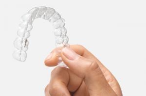 Il s’agit d’une série de gouttières transparentes amovibles qui doivent être portées en permanence sauf pendant les repas et le brossage des dents (22h par jour). Le changement régulier de gouttière permet un déplacement dentaire progressif.