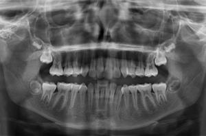 • Des radiographies : Panoramique (pour une vision d’ensemble de la denture et de l’évolution dentaire), de profil (pour voir les relations et décalages entre les mâchoires) et si nécessaire du poignet (pour estimer le stade de croissance du patient et la croissance résiduelle disponible) et de face (pour mettre en évidence des asymétries)